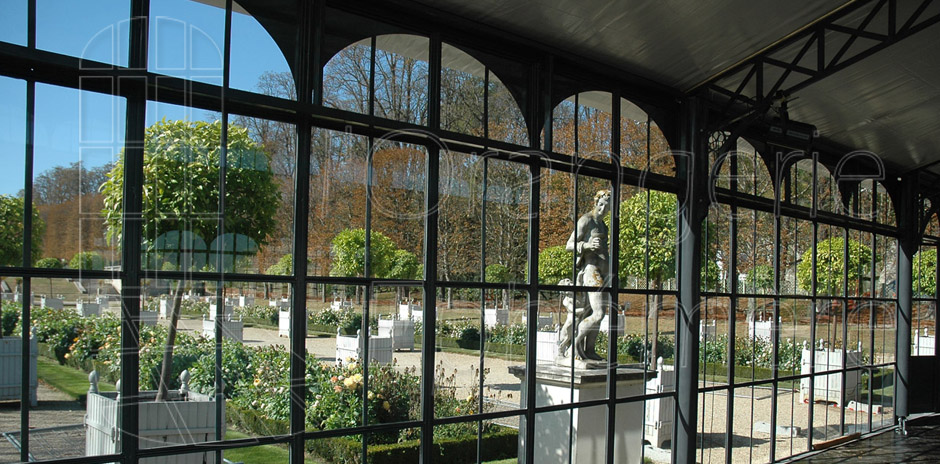- La forme arrondie des baies vitrées s’inspire des fenêtres des orangeries qui ornent les parcs de nombreux châteaux.